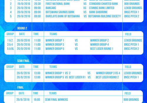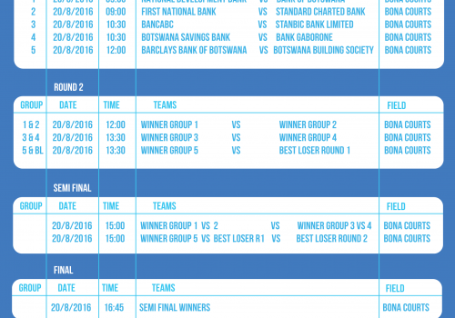 This year's interbank games are scheduled to start 19 August until 20 August. See below fixtures of various sporting games.